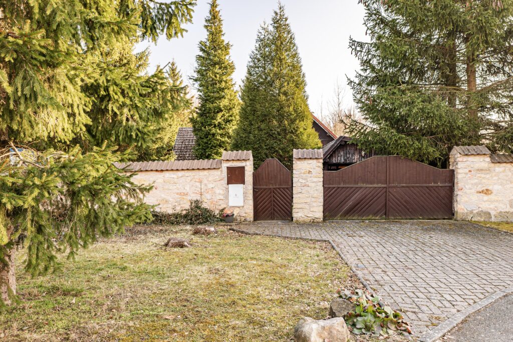 K domu patří zahrada se vzrostlými stromy a zastřešenou pergolou s velkým stolem a posezením. Dále zde najdete samostatnou chatku, zděnou garáž a zastřešené parkovací stání. Na pozemku je sklad na dřevo a zahradní náčiní a možnost vybudování sklepa. Celý pozemek je oplocen, což zajišťuje maximální soukromí.