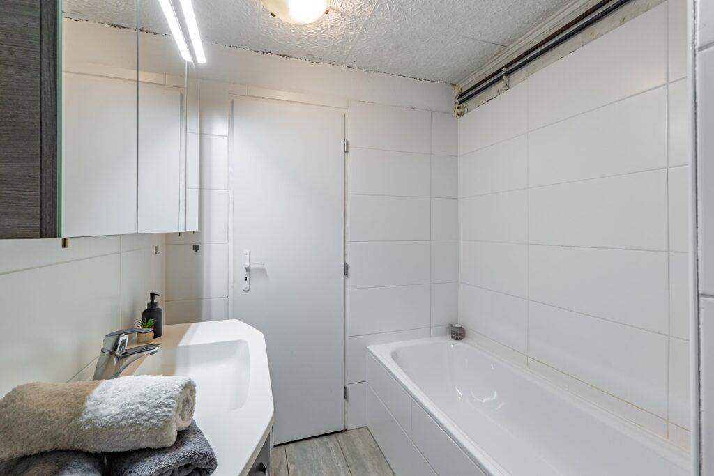 Dům je napojen na veřejný vodovod i kanalizaci, ohřev vody zajišťuje elektrický bojler o objemu 100 litrů. Vytápění je řešeno plynovým kotlem, díky kterému jsou provozní náklady efektivní.