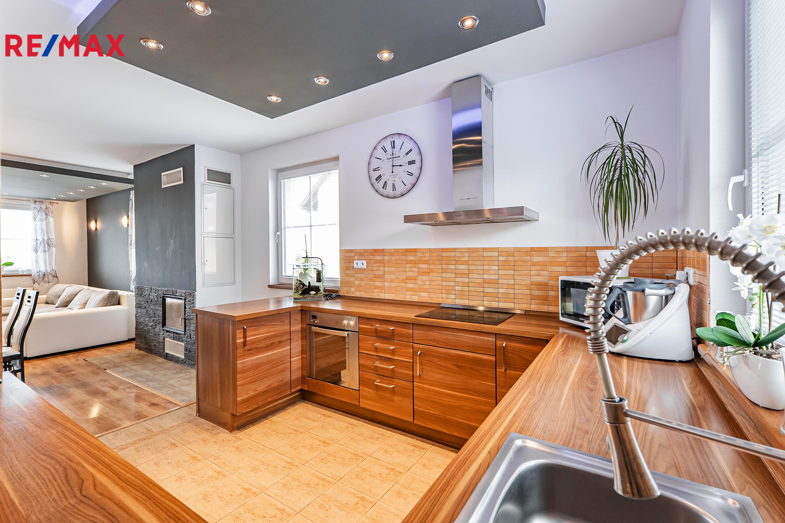 Dům je rozvržen do tří podlaží a disponuje celkovou podlahovou plochou přibližně 217 m². V přízemí se nachází praktická místnost s kuchyňským koutem a vlastní koupelnou s WC – ideální jako zázemí pro venkovní posezení nebo i menší podnikání. Součástí přízemí je rovněž garáž, která může sloužit nejen k parkování, ale i jako technická místnost nebo dílna.