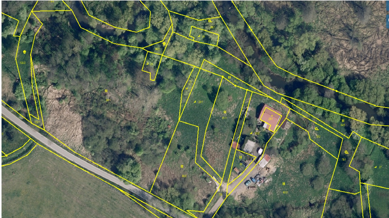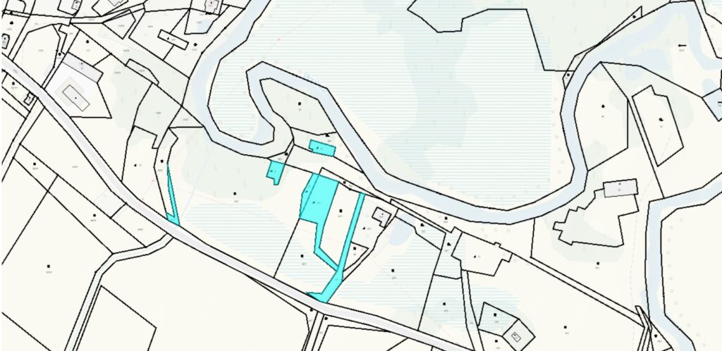 Pozemky jsou převážně vedené jako zastavěná plocha a nádvoří (zbořeniště). Součástí je také příjezdová cesta přímo z hlavní komunikace.