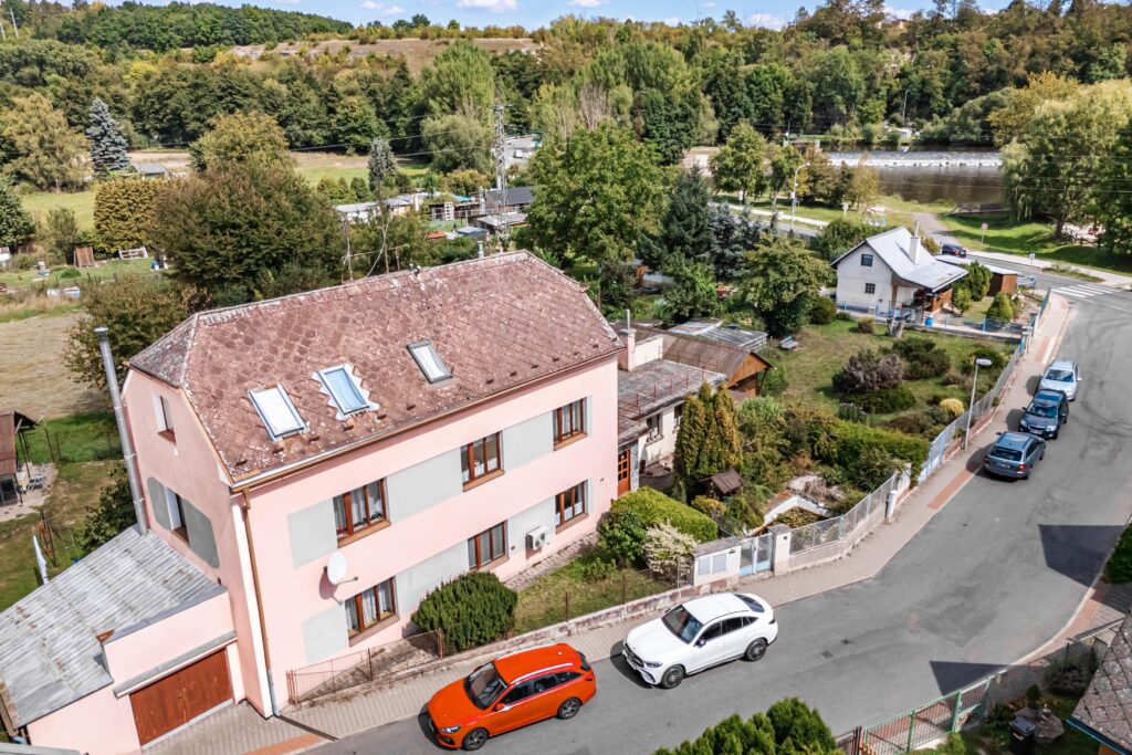 Dům stojí na souboru pozemků o celkové výměře cca 2 023 m² – zastavěná plocha a nádvoří cca 210 m², navazující zahrada cca 546 m² a trvalý travní porost cca 1 267 m². Původně přízemní cca 2+1 z roku cca 1870 se v průběhu let rozšířil: v roce cca 1939 přístavba a nástavba 1. patra, v letech cca 1969–1972 proběhla modernizace rozvodů, koupelny a vytápění, v roce cca 1970 byla vybudována garáž (cca 23 m²) a v roce cca 1998 vzniklo obytné podkroví. Dnes nabízí přibližně cca 220 m² obytné plochy v dispozici cca 9+2 – v přízemí se nachází vstupní hala, obývací pokoj, kuchyň s jídelnou a zázemí; v patře tři ložnice a koupelna; podkroví doplňují další pokoje, obývací část a druhá kuchyně se spíží. Dům má smíšené zdivo (kámen/cihla/tvárnice), betonové schodiště, v přízemí převládají betonové podlahy, v patrech dřevěné.