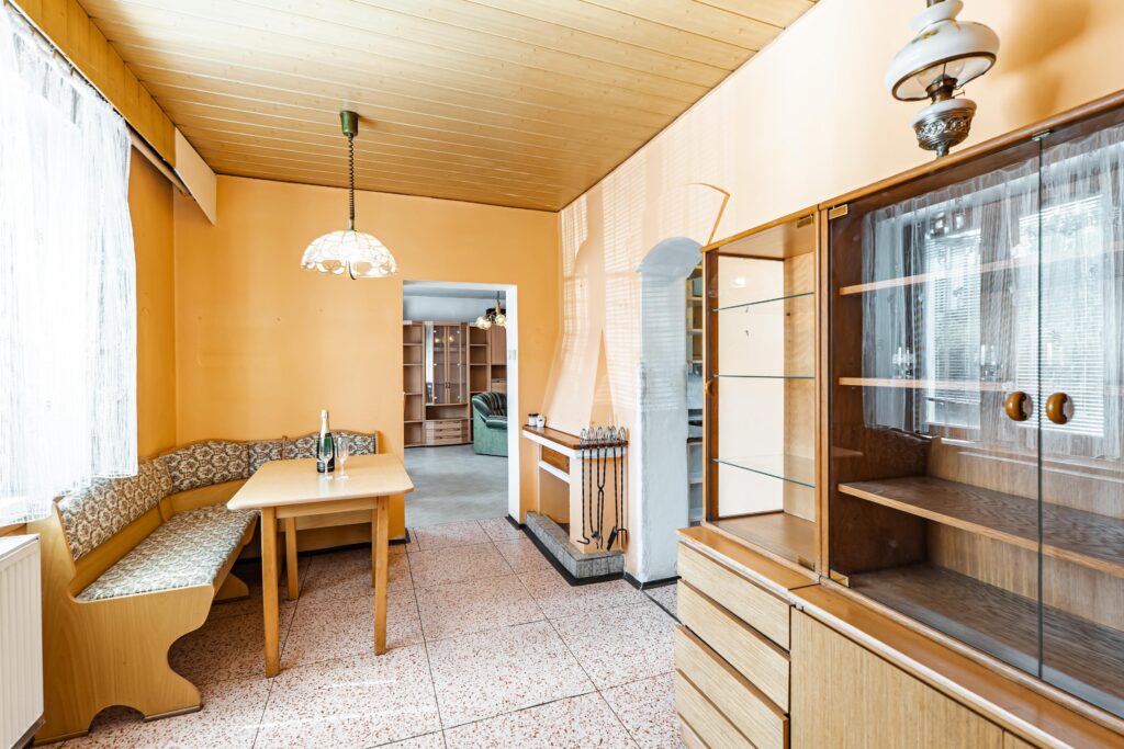 Technicky je dům napojen na obecní vodovod a kanalizaci. Vytápění zajišťují dva plynové kotle s možností přitápění krbem nebo tepelným čerpadlem vzduch-vzduch, ohřev vody plynovým kotlem; vaření probíhá na plynových sporácích v obou kuchyních. Interiér v části odpovídá starší úpravě, počítejte proto s rekonstrukcí, jejíž rozsah si můžete přizpůsobit svým představám. Zahrada plynule navazuje na louku, která poskytuje soukromí a dostatek prostoru pro odpočinek, dětské hry, zahradničení nebo hobby.