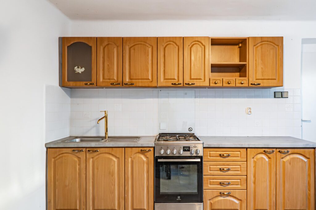 Druhá jednotka o dispozici 1+1 (cca 49 m²) má kuchyň, koupelnu, WC a v patře obytnou místnost s přístupem na balkon a prostornou půdu.