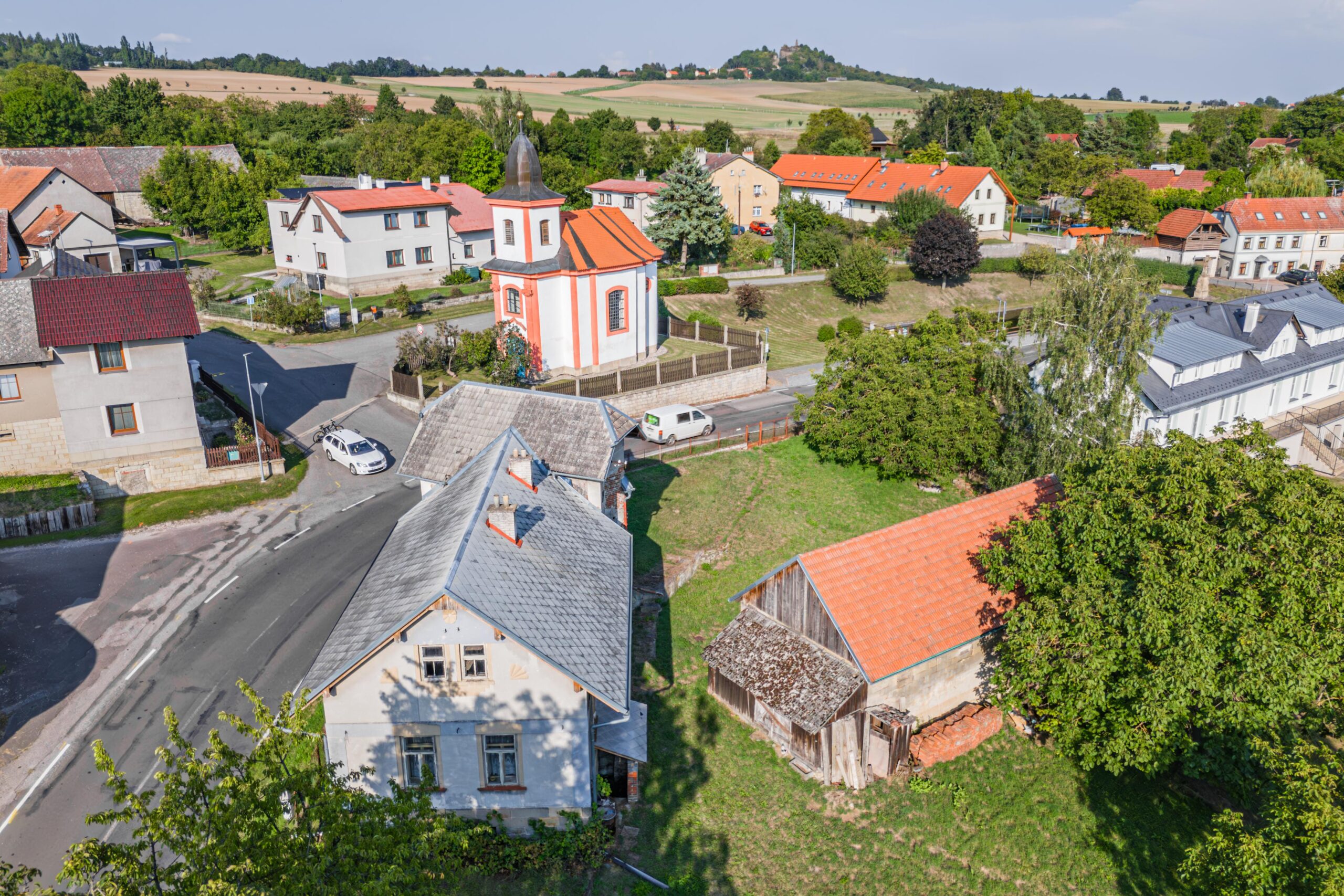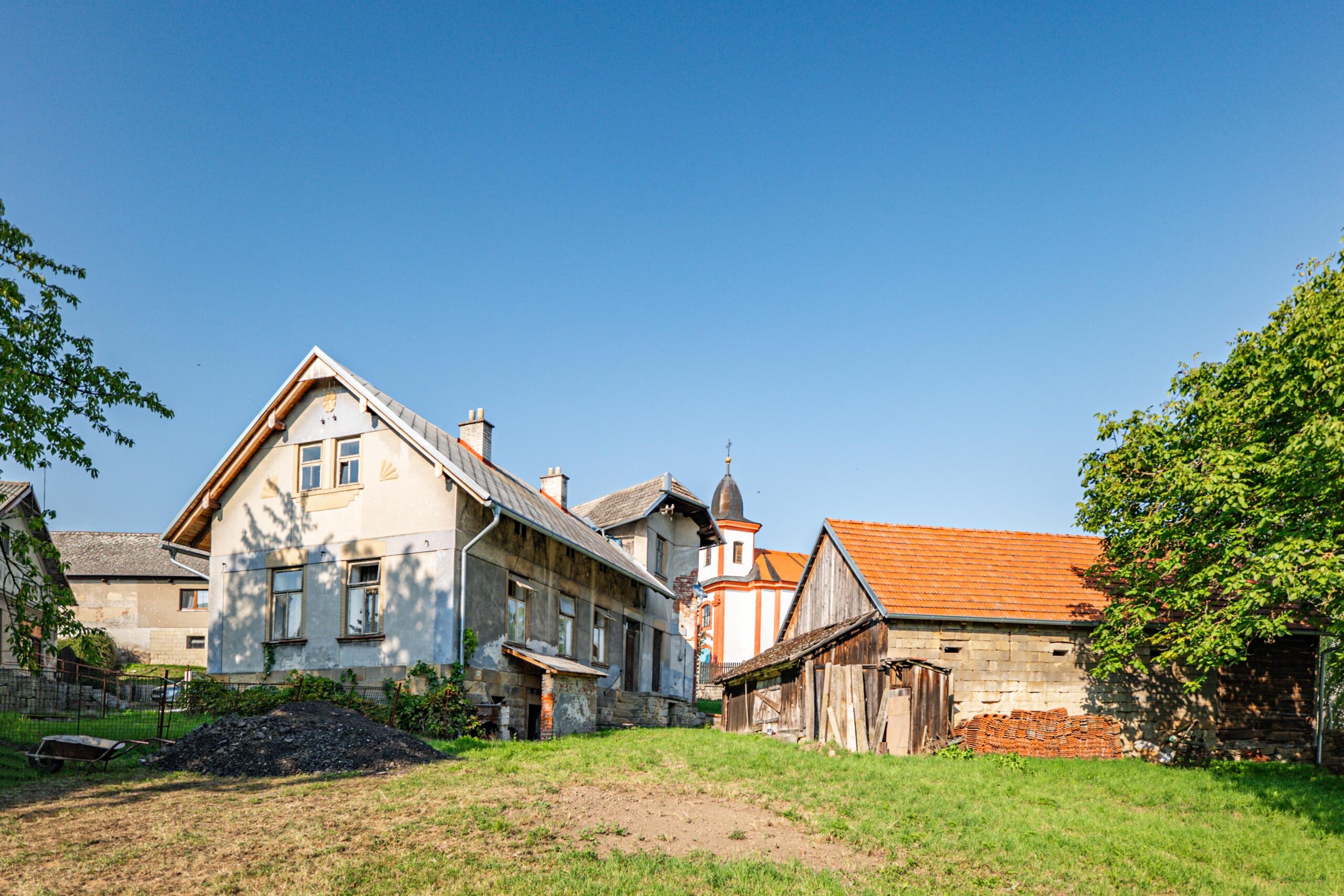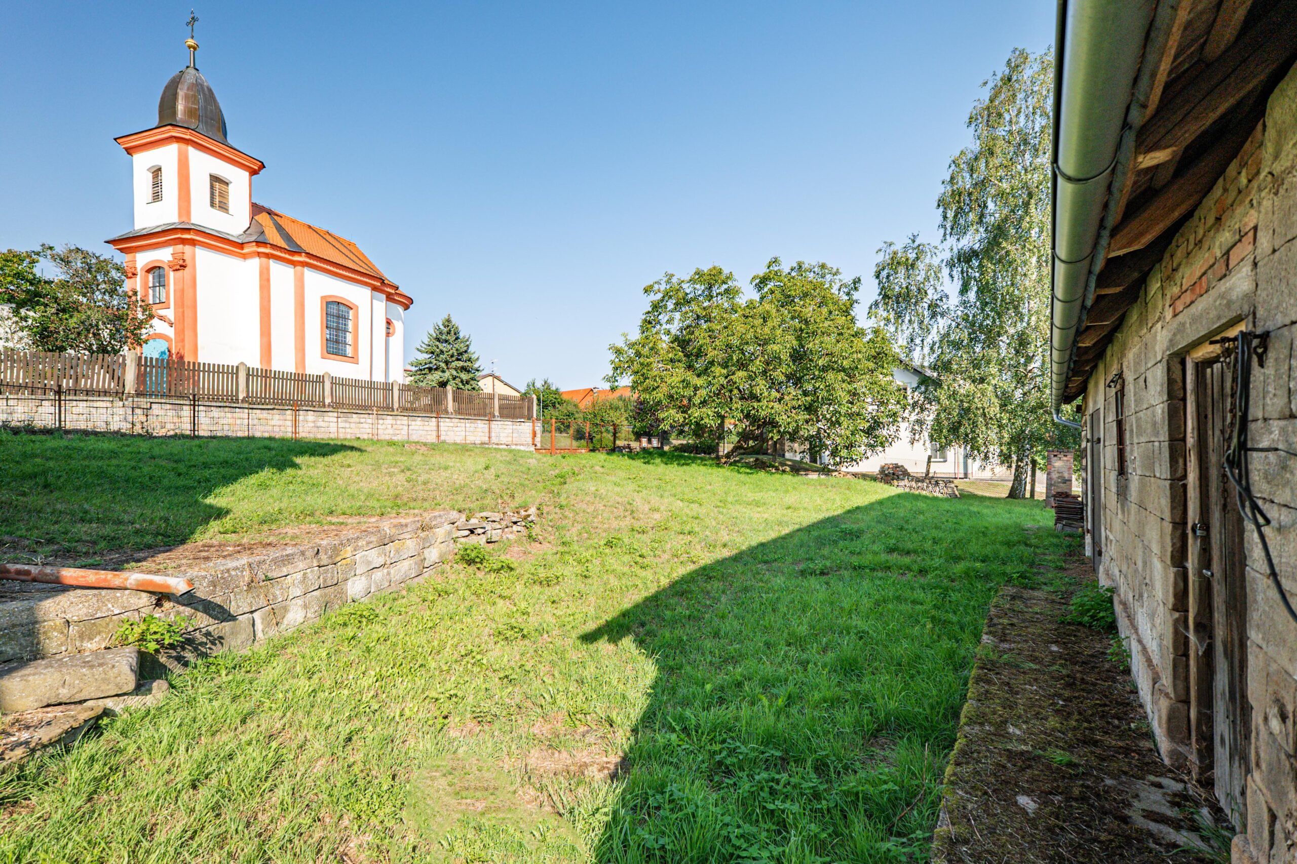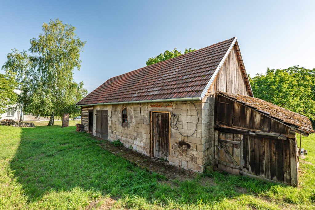 Součástí prodeje je také pozemek o velikosti 771 m² s udržovanou stodolou o ploše 90 m², která poskytuje dostatek úložného prostoru.