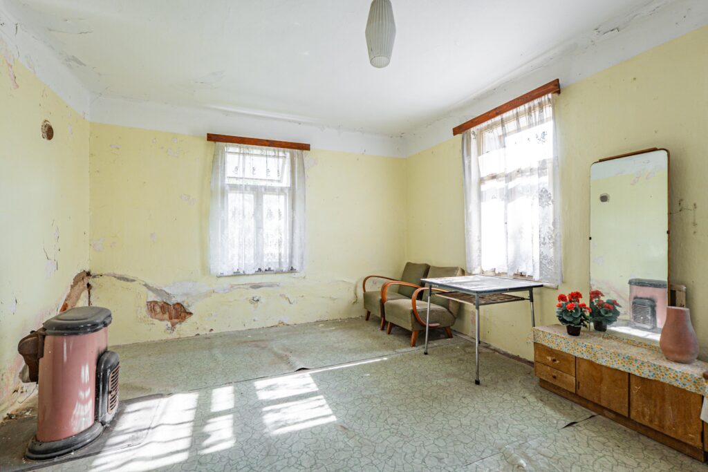 Nemovitost je v původním, ale udržovaném stavu. Topení je zajištěno lokálními kamny, k dispozici jsou dva komíny, a na hranici pozemku je připravena plynová přípojka. Voda je čerpána z vlastní studny a kanalizace v obci není vybudována. Střecha domu byla před pěti lety zrekonstruována a byly osazeny nové okapy.