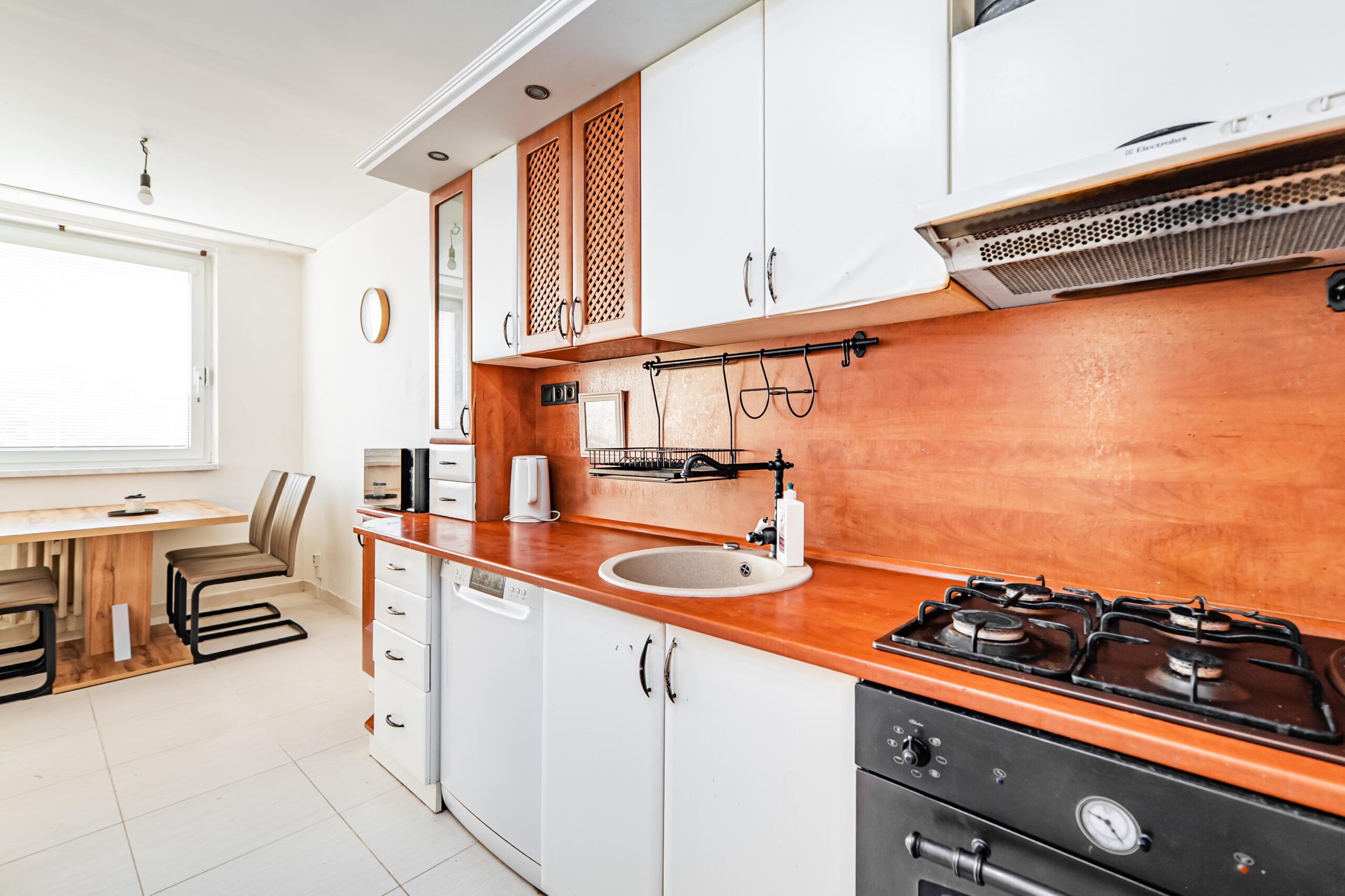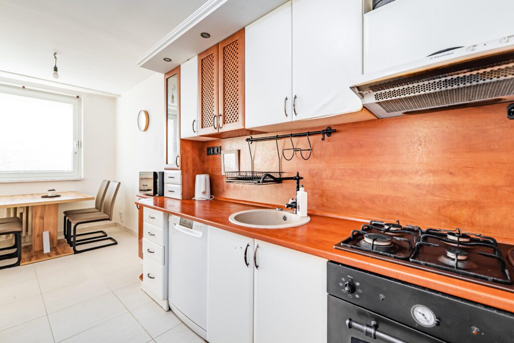 Koupelna je zděná, funkční a udržovaná, samostatné WC, kuchyňská linka je starší, plně funkční, s možností úprav dle představ nového majitele. Byt je vybaven bezpečnostními vchodovými dveřmi.