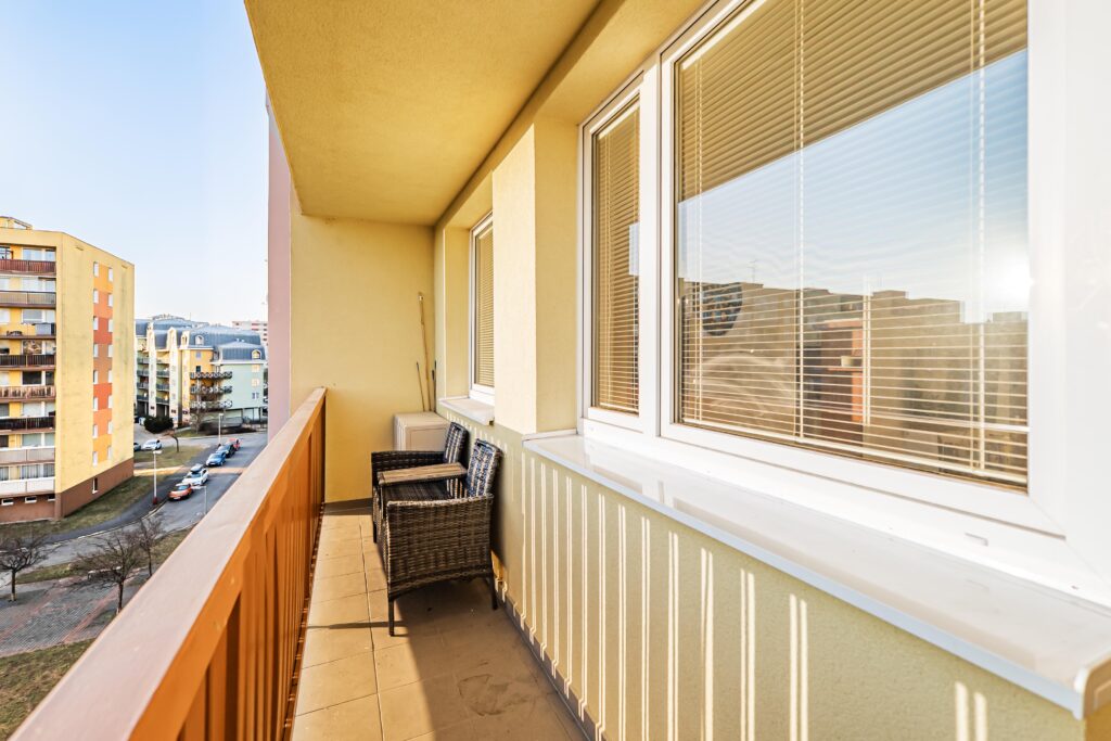 Velkým benefitem je prostorný balkon, který nabízí dostatek místa pro posezení, relax nebo zeleň, a dále sklepní kóje, poskytující další úložný prostor.