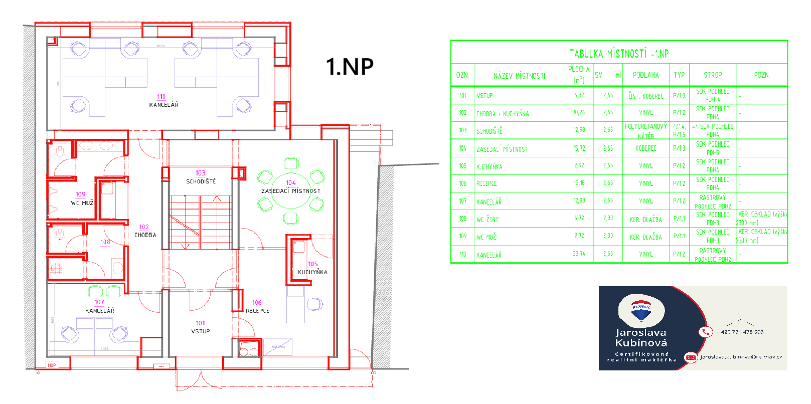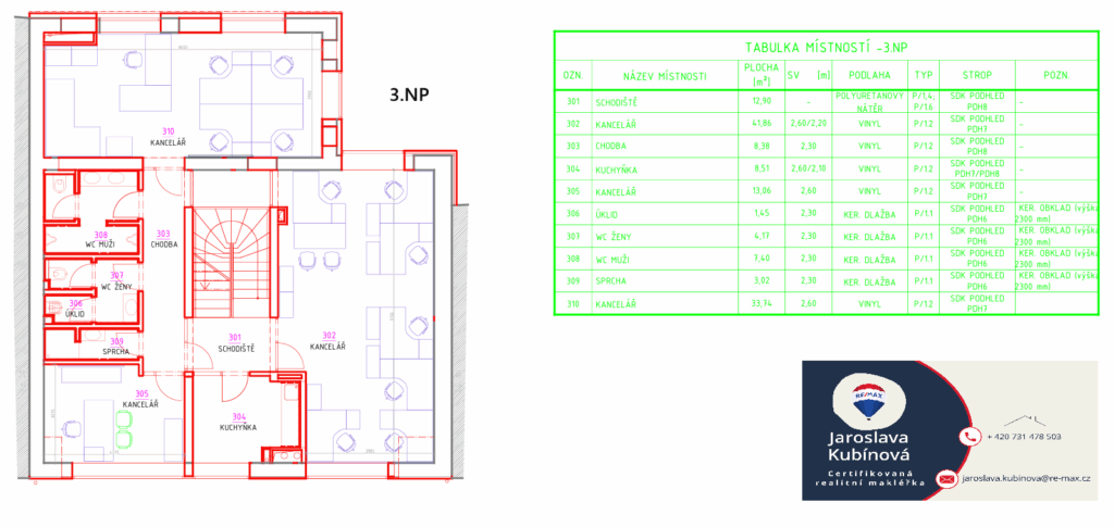 soubor 6 kanceláří (kapacita cca 25 pracovních míst)
