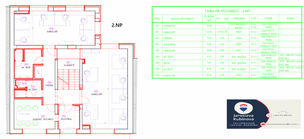 Nabízíme k pronájmu moderní a kompletně vybavené kancelářské prostory o celkové ploše 246 m² (1. NP – 125 m², 3. NP – 121 m²) v reprezentativní administrativní budově, která prošla kompletní rekonstrukcí před 6 lety. Budova se nachází v blízkosti centra Mladé Boleslavi a v těsné blízkosti technologického centra ŠKODA AUTO a.s.